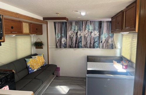 Experience the RV life! Come and stay in our newly remodeled RV in a quiet wood space on nearly 3-acre residence. Kitchen has all utensils and cutlery required for your stay. The RV has a queen bed and a sofa bed. Restroom and shower. Enjoy a quiet evening in the screened in canopy with seating, gas grill, and gas fire pit. Take a stroll in the woods.