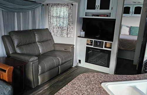 This cozy RV is nestled in a very quiet neighborhood with plenty of nature to experience. A short walk will bring you to a scenic outdoor shared space- a two story dock on the river where you can enjoy your morning coffee or just relax and take in the sights and sounds of the river. The washer and dryer is located in a small building adjacent to the RV. The living area includes a smart tv with fubo amd Netflix, star link internet, electric fire place, comfy futon and 2 person recliner. Sleeping space also has a smart tv and queen bed with fresh linens and under-bed storage. The bathroom has a walk in shower with all the basics- soap, shampoo and towels. Kitchen is fully equipped with a propane stove and 4 stove top propane