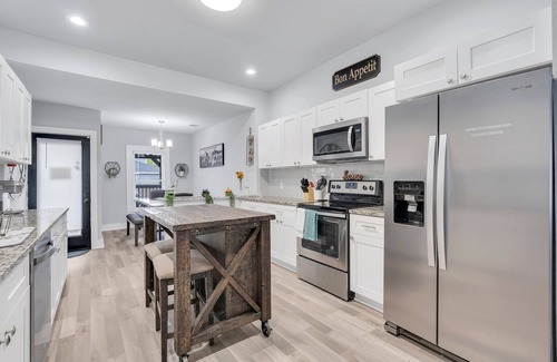 Checkout this 4-bedroom home with large 5-person hot tub and newly installed pool! House has tons of space, a modern touch and amenities to entertain family and friends! The best part is the central location in San Antonio! You are 3 minutes from the Alamo Dome, 5 minutes to the River Walk, 8 minutes from Frost Bank Center, and 10 minutes to Pearl Brewery! This home has fast Wi-Fi with apple TVs in every room to steam Netflix, Hulu, Spectrum and many other great streaming services! Arcade games, Darts, Connect 4, and Corn hole also available! Very quiet neighborhood with restaurants, shopping malls, and convenient stores minutes away as well!