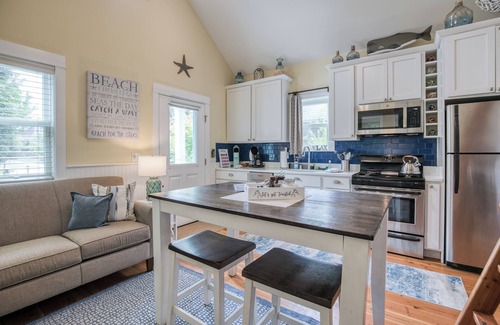 Catch A Wave is equipped with a fully stocked kitchen for your visit. We have all of the essentials including, but not limited to, pots and pans, plates, bowls, cups, silverware, cooking utensils, cutting boards, knife set, plus more. There is a dining table that seats four.