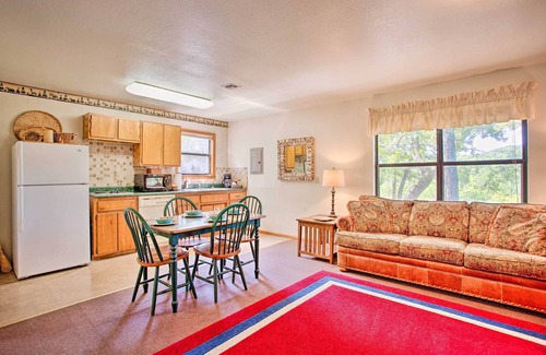 Escape to a refreshing retreat at Mountain View, this 2-bed, 1-bath cabin. Located within a few miles of Turner Falls Park and the Arbuckle Wilderness area, this vacation rental offers all the essentials for your next trip to southern Oklahoma. Spend time hiking and exploring the great outdoors, then venture out to the more unique attractions like Air Donkey Zipline Adventures or Crossbar Ranch Offroad Park. At day's end, enjoy a meal on the screened-in porch, then watch the sunset on the deck!
