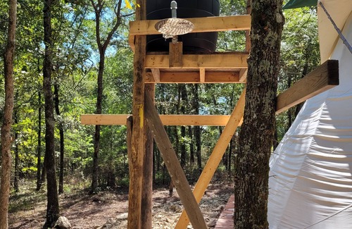Located in Cedarcreek, MO this private ranch in the Ozark Mountains is a dream for those who want to get away from the hustle & bustle of life. Experience a unique stay in our furnished 14 ft. Sioux tipi. With more than 8 miles of cleared trails, you can hike as you enjoy the beautiful wooded scenery and abundant wildlife. There are lots of creeks & small waterfalls on the property during most of the year except during times of drought. Our gate is a short mile to access beautiful Bull Shoals Lake. Enjoy the exceptional sunrises & sunsets and stargaze at night from your tipi or camp chairs. Our glamping tipis are set on secluded, wooded, shady sites and and are out of sight of other campsites.