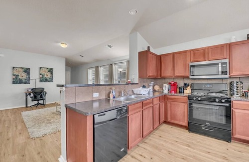 Experience cozy comfort near Tesla Gigafactory in our 4BR Austin home, ideal for professionals and families. Unwind in our warm, inviting living space, sleep peacefully in tranquil bedrooms, and stay productive with a dedicated workspace and high-speed internet. Our modern kitchen is perfect for home-cooked meals. Enjoy a spacious backyard relaxation and fun. Minutes from Tesla, it's the perfect blend of innovation and tranquility for your Austin stay.