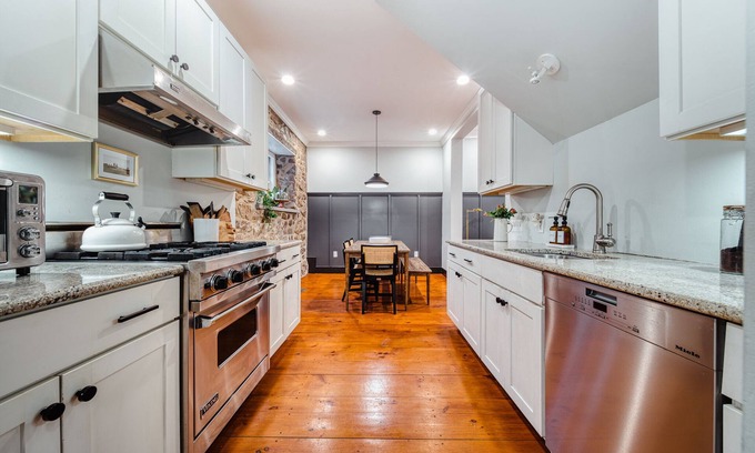 Welcome to The Stone House on Main! Located in downtown Stockton, our charming country home combines historic appeal with contemporary flare, offering a unique and comfortable stay. With 3 bedrooms and 2.5 baths, our house accommodates up to 8 guests. Enjoy your morning cup of coffee on our picturesque front porch, perfect for people watching. Our fully-equipped kitchen provides everything you need to cook meals at home. Prefer to go out? We're a short 10-minute drive from downtown New Hope, PA, Lambertville, NJ and Peddler's Village, where you'll find a plethora of restaurants, bars, shops, and attractions.