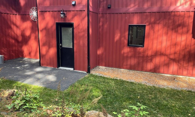 Ground floor studio apartment. Large slider with view of the stream. Walk out to small patio. Studio features a queen bed and fully equipped kitchen. Large entryway with closet, plenty of room for skis and outdoor equipment. Private location with separate entrance ensures a quiet enjoyable stay.