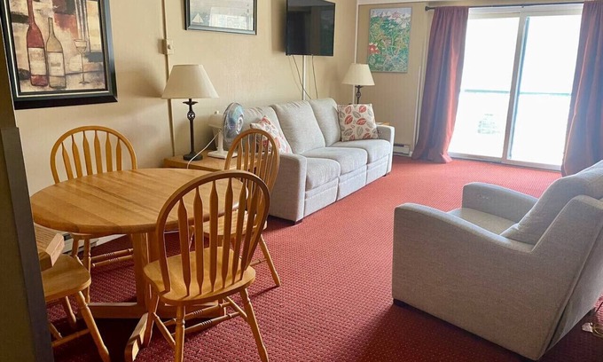Our 1 Bedroom Apartment, has a well-equipped kitchen, spacious living area, separate bedroom with 2 double beds, and a queen murphy bed. a private balcony for enjoying your morning coffee. Relax along the Pemi River, just a mile from the ski lifts at Loon Mountain. Enjoy free parking and a seasonal shuttle to the slopes. Relax in our indoor pool and hot tub, or get active in the gym. Unwind in our community room featuring a fireplace, flat-screen TV, and pool table.