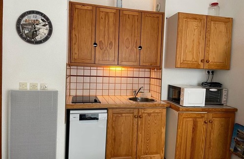 Studio for 2 people of 22m² located on the ground floor with terrace. Equipped kitchenette: electric hob, fridge, dishwasher, washing machine; Living room with television, a sofa bed for 2 people.