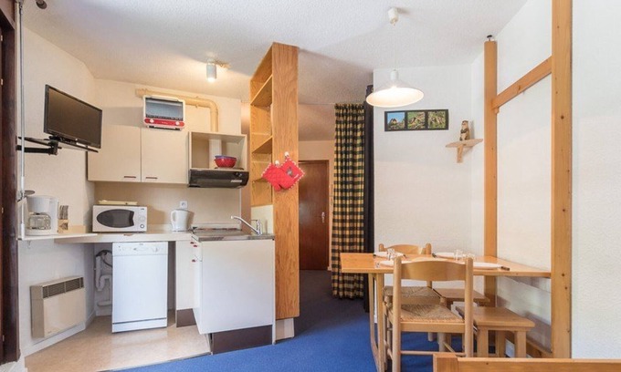 This holiday studio rental in the Chantemerle ski resort has a fitted kitchen area.