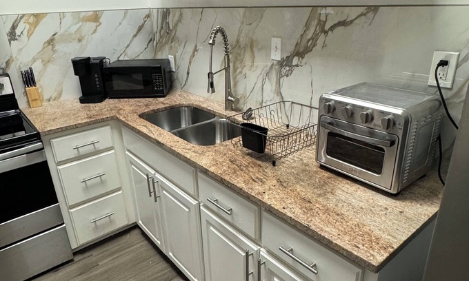 Discover this fabulous studio gem in Baker. This tremendous space offers WiFi, iron, heating, and AC for your comfort. With a cozy bedroom and a well-equipped bathroom, guests can relax and unwind in this serene retreat. We hope you enjoy what our place and Baker has to offer.