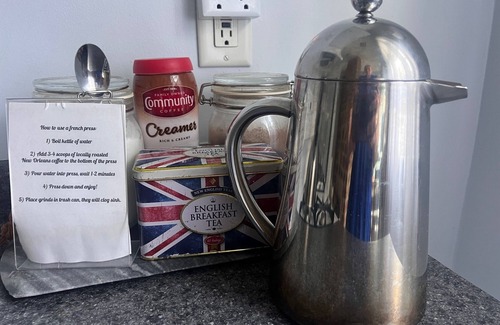 Located in New Orleans, this marvelous studio is a dream. With its serene ambiance and pleasant surroundings, guests will instantly feel at ease. The cozy bedroom features a comfortable queen bed, ensuring a restful night's sleep. The bathroom is equipped with a hair dryer and a relaxing tub/shower. This property also offers convenient amenities such as AC, heating, WiFi, an iron, and a washing machine/dryer and french press with coffee. The kitchen has all cookware and dinnerware should you choose to dine in. A great place to call homebase while you're away, we hope you enjoy your stay.