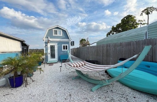 Unwind in Ruskin at this lovely new tiny home studio! With AC, WiFi, and heating, guests can relax in comfort. The bathroom offers all the essentials for a refreshing stay. Features kitchette with mini fridge, sink, and microwave and outdoor electric grill. Private unit on spacious shared rural property with one other rental displaying individual marked parking and waterfront patios for privacy. Dock for fishing, relaxing, or just watching passing boats, dolphins, manatees and more! Right on the Manatee River for beautiful views and relaxation. Feel free to reach out to us during your stay - we're happy to suggest local spots to check out.