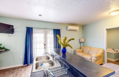 When you want to relax, unwind, and invest in some you-time, dip into the jetted tub or lounge on the plush bed and equally comfortable sofa. At the end of the day, throw your clothes into the shared washer/dryer and flip the central air-conditioning on at the end of the day.