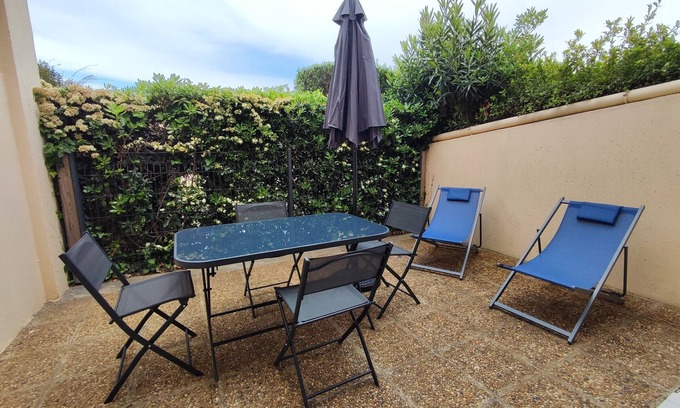 ARGELES PLAGE, "Le Hameau Au Soleil" residence, 500m from the sea, lovely ground floor studio equipped for 4 people: