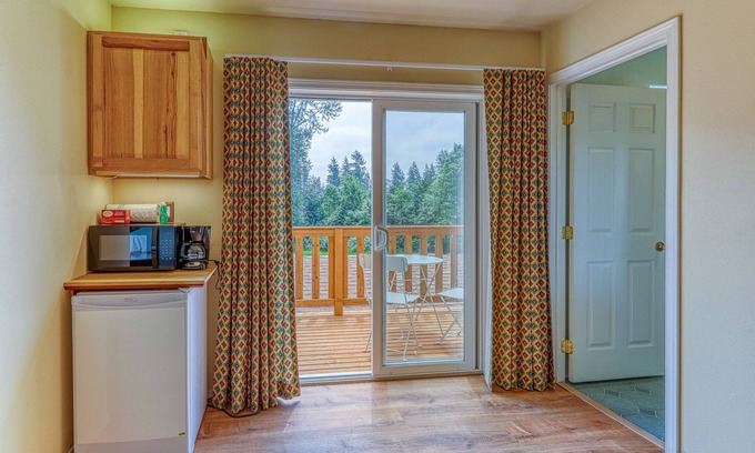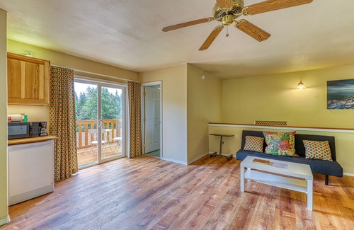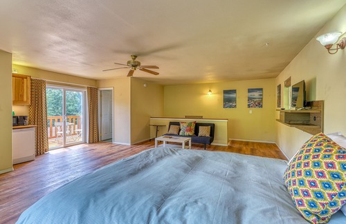 This spacious studio is close to everything you'll need on your next trip, but secluded and away from it all for the perfect, quiet getaway! The rental's furnished deck has a bistro table and chairs to enjoy a morning coffee or evening glass of wine and take in the garden view. Inside, you can log into your Netflix account and watch your favorite shows and movies from the couch or the bed.