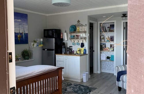 This private suite with ensuite is newly renovated and can accommodate up to 2 people. The appliances and furnishings are new. Equipped with a kitchenette which includes a fridge, combination microwave/grill/convection oven , sink, toaster, coffee maker and a tea kettle, it is perfect for those who may want to eat in. WIFI is included and a smart T.V. With many shows to watch. You are also able to conveniently self check-in by a electronic door lock.