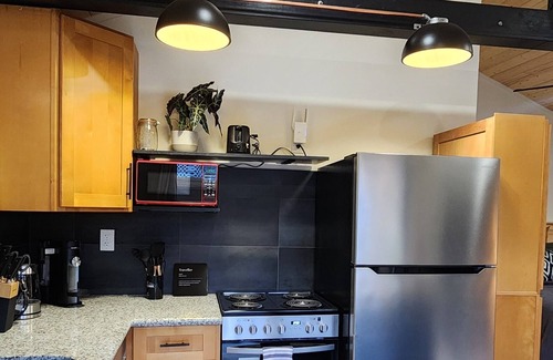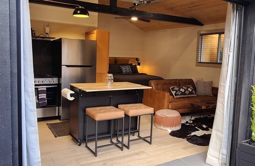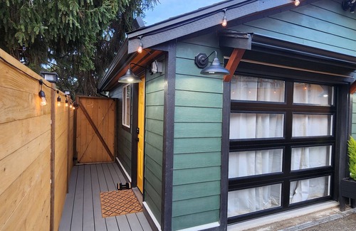 Escape to this enchanting studio in picturesque Tacoma. With a cozy atmosphere and modern amenities like a Washer & Dryer, WiFi, fireplace, and retractable garage door, guests can relax and unwind in this brilliant space. Our queen bed with luxury bamboo linens will make it hard to leave. Enjoy all your favorite streaming shows (many included) from our 65 inch tv. The bathroom features a refreshing shower, in floor heating, and custom toiletries. Experience what Tacoma has to offer with a stay at our studio.