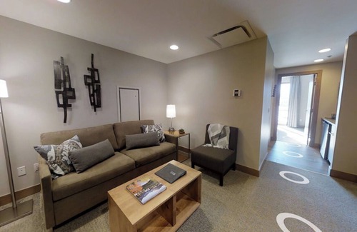 Discover this wonderful 1-bedroom gem in Breckenridge. The residences at the Grand Colorado offers a fitness room, WiFi, AC, hair dryer and more for your convenience. The living room with a sofa bed provides additional space for guests to relax and unwind (fits 4). Whether you're hitting the slopes or exploring the charming town, this adorable retreat is the perfect home base for your adventures. We look forward to hosting you at our place!