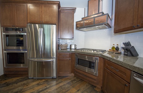 The kitchen is oversized with multiple working areas finished with modern cement and copper touches. The home features double ovens, warming drawer, microwave, large pantry, and all the pots, pans and kitchen utensils one needs to host a dinner for 16. Dining table seating up to 10. Outdoor eating space seats seats 8 with extra chairs around the fire pit and on the patio.