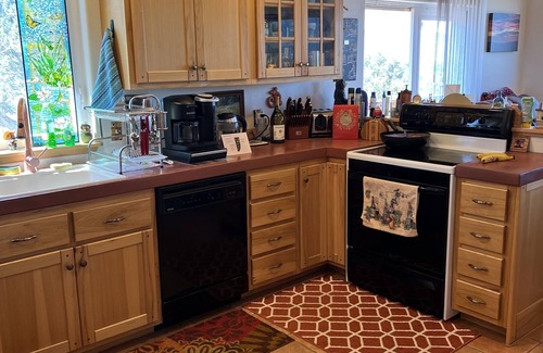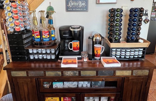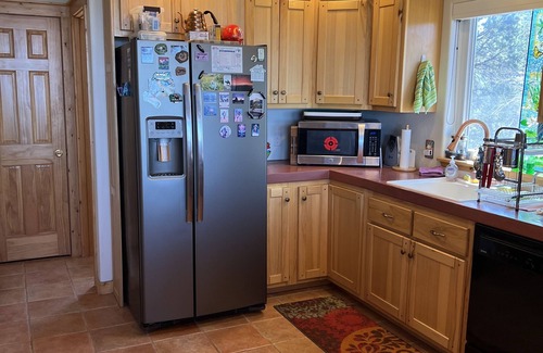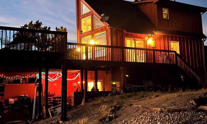 If you’ve ever wanted to stay in an enchanting Swiss chalet overlooking a beautiful valley surrounded by mountains and mesas, this is it! The Sunset Chalet at Sweet Surrender Ranch offers three interior floors comprising a master suite loft, a first floor second bedroom, two full bathrooms and a partially finished basement with third full bath across 1,700 square feet of interior living space and 900 square feet of outdoor deck and patio space in a cozy vacation home perched majestically on a ridge overlooking the Montezuma Valley. The Chalet has two indoor stairways to get around from floor to floor. In addition to stunning high-ground vistas, which you can view from the Chalet’s great room, master bedroom, patio, and private spa hot tub, the Ranch has 10 private acres with trails for guests seeking a tranquil communion with nature, without giving up the comforts of home. The Ranch also borders approximately 2,000 acres of public wild lands, which are available for hiking and walks. 🌅During your stay at the Ranch, your privacy is guaranteed—the Chalet is the only living quarters on the Ranch (not a guesthouse). There is however a doorbell/deadbolt/recording camera on the main entry door that will alert the owner when someone approaches the outside of the main door. The Ranch grounds and Chalet are also smoke/vape free and pet-free. If you intend to smoke tobacco or cannabis products on the grounds, we ask you to book one of the many different bnb’s in the area that permit such smoking. While service animals are permitted, they must not be left alone at the Ranch. Emotional support animals are prohibited if law and VRBO rules permit the prohibition. Pets of any kind or breed are not permitted. Packages may be delivered to the Chalet using private services such as UPS and FedEx. However the U. S. Postal Service does not deliver to the Chalet directly and there is no guest access to the Chalet mailbox. If a package is sent by the U. S. postal service, it will be undeliverable and will be returned to the sender. 🌅We limit guest stays to 15 nights maximum. If you need a longer stay, other vacation rentals in the area can oblige. The Ranch is nestled peacefully among the indigenous Pinyon Pine, Juniper, and Scrub Oak just 10 minutes/6 miles from Mesa Verde National Park, 20 minutes from Cortez, and 45 Minutes from the famous mountain town of Durango. The Ranch is only 5 miles from the U.S. Rt. 160 Mesa Verde National Park exit (the same exit for the Ranch) and accessible by a well maintained subdivision gravel/dirt road, and the Ranch's own asphalt driveway. 🌅A number of local attractions are within minutes including the exceptional Phil's World mountain biking area. For those guests who like to take walks or hikes, or who bring their ATVs or UTVs, the Ranch includes a trail system around the property and on the 2,000 acres of wild land surrounding the property. The trails are hilly and strenuous and in a natural state so caution must be observed when using them, but they are marked for safety and convenience. Please see the Ranch’s Hospitality Guide for a trail map and important safety information before using the Ranch’s trail system. The Ranch’s asphalt and gravel driveways can be used for easier walks. The Ranch is also trailer friendly—no need to worry about backing up. The main driveway is supported by a loop driveway that was built to allow trailers and large vehicles like motorhomes convenient access. There is also a 30 amp outdoor RV receptacle on the loop driveway. 🌅Designed to fit well within the natural environment around it, the Chalet is decorated with Dine (Navajo) art, and a southwestern motif, with traditional western accents. The main southwest facing exterior wall of the Chalet is a Swiss styled angled prow design made nearly entirely of glass 2 stories high—so even when you're inside, you feel like you're outside! There are dining tables on the deck and patio that invite you outside. There is also a 4 person western themed dining/game table and cozy sitting area next to a beautiful soapstone wood stove inside the Chalet. The coffee table in the sitting area has a top that raises up to accommodate laptop computers or meals. In the loft you will find the master bedroom complete with a luxurious two person whirlpool bathtub and an olympic/extended queen bed (six inches wider than a standard queen). Above the jet tub is a large picture window facing northeast through which the La Plata Mountains and the summer morning sun are in full view. There are also two small closets, double vanities, a shower and a toilet with bidet. Finally, there is a small smart TV with access to 200 channels on the Chalet’s Dish Network account, including local channels and some movie channels. Streaming internet services such as Netflix are also available through ROKU, though the wifi internet speed often hovers around just 7mbps. The large loft is also the master bedroom. Being at the top of stairs and around a corner, the loft is mostly private from the great room below—there is no door to the loft/master bedroom. The custom crafted bed however is not visible at all from outside the bedroom so your privacy while sleeping is secure. Additionally, the toilet and shower area in the loft does have a pocket door for complete privacy (see photos). Wireless Internet service is often around 7mbps, with service up to 25 mbps max. 🌅On the main floor there is a dining/game table for four, a sitting area by the wood stove, a small second bedroom, a full bathroom with shower/tub and toilet/bidet, a full kitchen and an extensive coffee bar with a Keurig K-Duo coffeemaker along with complimentary k-cups, and fresh ground coffee. With the Duo, you can make a single cup of your favorite morning joe using a k-cup or make an entire carafe using the fresh ground coffee we provide. In addition to the Keurig, we have a Nespresso Vertuo espresso and coffee pod brewer, and a variety o