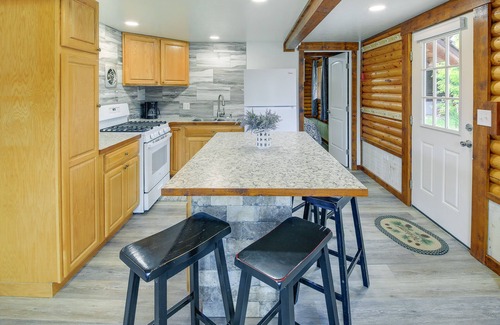 CABIN FEATURES: Gas fireplace, counter-height dining table, 3 shared acres w/ mountain views