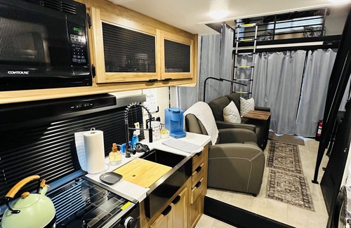 Your cozy getaway awaits in Springtown at this adorable tiny home. This quaint property features 1 bedroom loft, WiFi, AC, a washing machine/dryer combo, full kitchen, and a fire place. A short 5 minute drive to downtown springtown. An easy 19 minute drive to Weatherford, and a straight shot to downtown Fort Worth in 40 minutes. Enjoy all that Springtown Texas has to offer when you stay at our place.