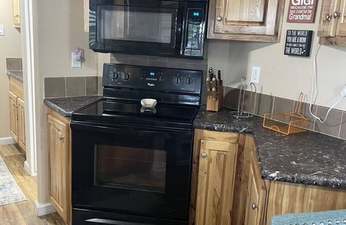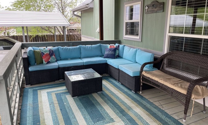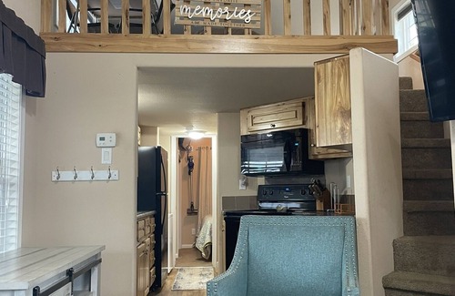 Our tiny home is perfect for a long First Monday weekend with your spouse or friends. The kitchen has just enough space for cooking in and a great couch for relaxing after a long shopping day. Big TV in the living room and bedroom.