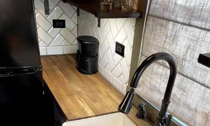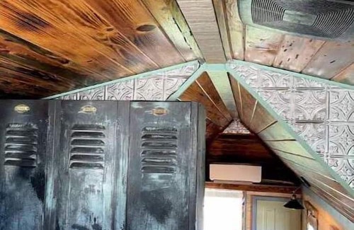 This Tiny Home has a queen size bed in the loft and full size sofa couch on the main floor. There is a TV in main living area with HDMI cable for laptop/computer. There is a microwave/convection oven, cooktop, and refrigerator. A small dining table with two chairs. The home is heated and cooled with a mini-split.