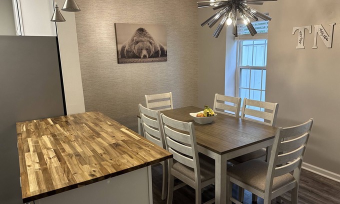 A beautiful and newly renovated Townhome in the heart of downtown Sevierville. Modern style with a country twist, this space has been thoughtfully curated to ensure a wonderful stay! Centrally located without the traffic of Pigeon Forge! Minutes from Dollywood, Soaky Mountain Water Park, great restaurants, and shopping. A perfect location to rest and unwind in between all of the exciting attractions that the Smoky Mountains have to offer.