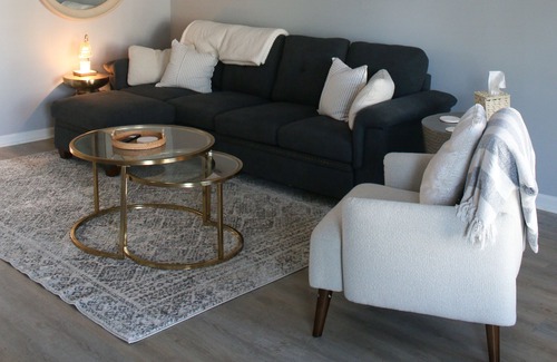 Come escape to the relaxing townhome, located 4 miles from furniture market! The modern space with all new appliances & furniture will be sure to make you feel right at home. The spacious living room invites you to relax. The fully equipped kitchen & dining offers you to enjoy a home cooked meal & sit by the tabletop fire pit on the private patio. The second floor accompanies you to the office, full size bedroom & king sized bed in the master room. Starbucks, gas, etc. all within a mile!