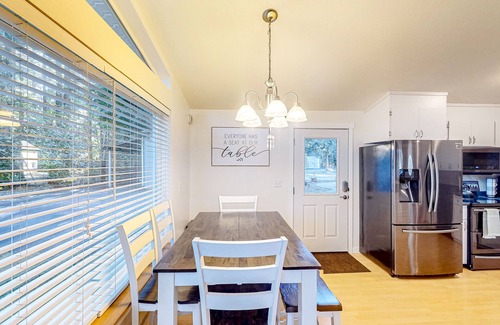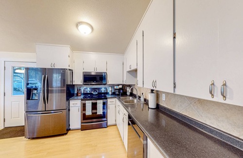 Inside your cozy retreat, settle down amidst wilderness-themed mementos and ample natural lighting. The soft seating and large TV in the living room make for inevitable movie nights, whereas the full kitchen makes cooking a breeze!