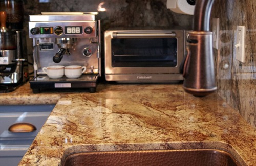 Comfortably sleeps six, but the over-size leather couch in the living room is a good option for a seventh guest.