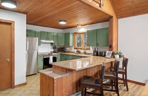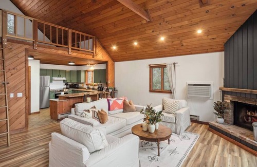 The cabin includes all the amenities you'd expect including modern appliances, dishwasher, wifi, washer/dryer, heating, AC, toiletries, grill, fireplace, board games, TV and plenty of space for uncovered car parking.