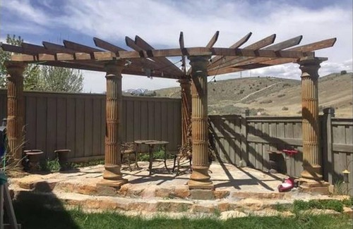 We also have an amazing stone gazebo in the backyard with views of the mountains.