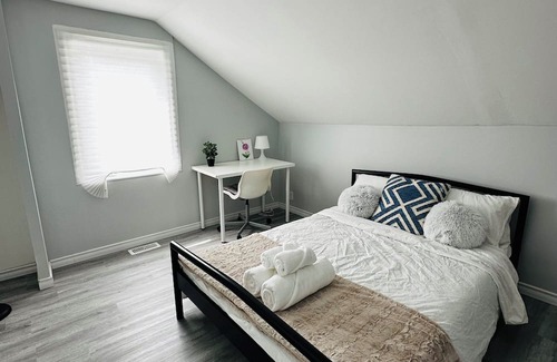 Cozy Two Story House with Patio, BBQ and Backyard - Welcome to our cozy semi-detached house near downtown Peterborough. This 2-story home has 2 bedrooms, one connected to the other. Enjoy a spacious living room, bathroom, and generous kitchen with all cooking . A quaint deck leads to a shared backyard with big 4 burner BBQ 🍗 . Two free parking spots included. Explore downtown, 10 minutes away, with vibrant nightlife and a beautiful lake view.