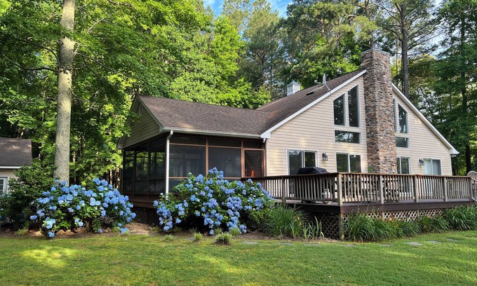 Whether it's boating, kayaking (6 provided, with paddles), fishing (off our private dock), or crabbing (crab pots provided), BBQing, eating out on the screened porch, sipping margaritas or beers on the sun splashed deck, napping in the outside hammock, exerting yourselves with a game of horseshoes, walks in the private woods, lounging on the dock with a steaming cup of Joe watching the mist on the river as the sun comes up, or just curling up in a comfy chair with a good book from the house library, this tranquil vacation home is for you!