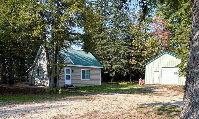 Cozy Seney, Michigan Cabin is perfect for your Upper Peninsula adventure. Enjoy a full kitchen, washer/dryer, living and dining area, and room for your gear. Upstairs features a queen bedroom and a second bedroom with a double and a twin bed. Located on the west side of the Fox River and next to Snowmobile Trail 43, you’re close to Andy’s Bar and local gas stations. Railway Lodge vacation rental is also on the property for larger groups.