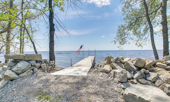 Peaceful seclusion, world-renowned fishing, and views of fireworks shows await upon booking this wonderful vacation rental on the shore of Green Bay. Boasting a stunning 4-acre property with a private 1000-foot waterfront and 55-foot dock, this retreat offers everything you need for endless water adventures. When you’re not on the boat, fire up the grill and fire pit for an afternoon BBQ, or cozy up in the 2-bedroom, 1-bath interior. Head about 7 miles to visit the small town charms in Oconto.