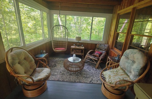 Charming, comfortable cottage tucked away in a serene setting in Mahkeenac Heights. Step back to a time when things were simpler, less hurried. The cottage features an open living and dining room with fieldstone fireplace, galley kitchen, glass enclosed 3 season porch, 2 bedrooms, and a sleeping loft with 2 single beds. Back yard with deck, hammock and fire pit. Prime location between Stockbridge and Lenox villages, 2 miles to Tanglewood, short walk or 2-minute drive to Stockbridge Town Beach.