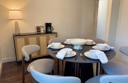 Enjoy a fully equipped kitchen stocked with all the essentials: pots, pans, utensils, microwave, toaster, electric kettle, and more. The private dining room seats six comfortably and includes a buffet cabinet with a coffee station to start your mornings right.