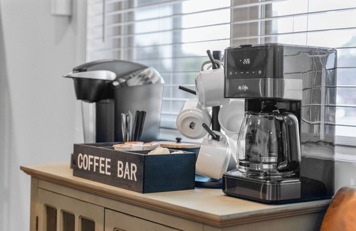 Your fully appointed kitchen includes a coffee bar, wine bar, and stainless steel appliances.