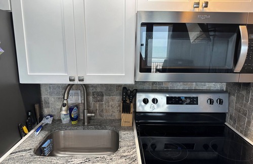 This Daytona Beach Shores condo overlook’s the huge pool and ocean from the private balcony & living room/ kitchen combo. It boasts 1 lovely bedroom with 2 queen beds . In addition to the cozy bedroom, there is a quaint living room with a queen sofa bed for extra sleeping space. Guests can enjoy amenities like WiFi, heating, and AC during their stay as well as utilize the awesome tiki bar that is pool side for amazing burgers and other great food as well as adult beverages and non alcoholic beverages. We look forward to welcoming you to our place.