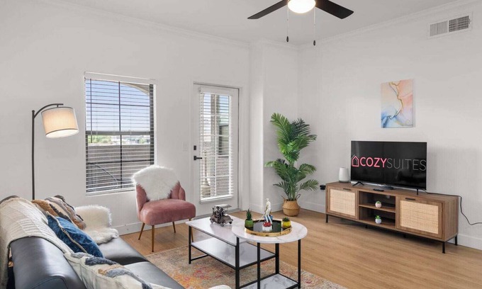 CozySuites proudly brings you the finest newly built condo in Chandler that is steps away from some of the best shopping, dining and entertainment, and golf course in greater Phoenix! This condo is perfect for leisure, snowbirds, spring training, and business travelers! When you are done exploring the area, come take a dip in the jacuzzi with friends and enjoy a night by the fire pit! Inside each condo you will have the comforts of home you deserve and a whole lot more!