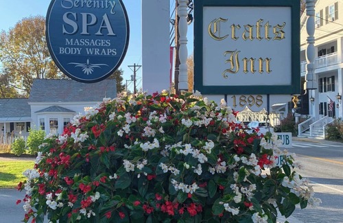 For year-round outdoor sports and gorgeous scenery, try the Crafts Inn, which was designed in 1898 by Stanford White and is now registered as a National Historic Landmark. The Crafts Inn provides an indoor pool, racquetball court, and saunas. The Mount Snow ski area is within 6 miles. In addition to the average annual snowfall of 15 feet, snowmaking ensures plenty of snow from mid-November to early May. In summer, enjoy swimming and boating on 14-mile-long Lake Whitingham, as well as playing tennis, golfing, and horseback riding.