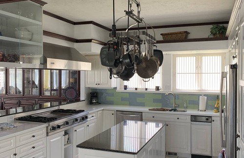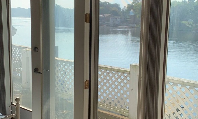 Relax in style in this beautiful Craftsman-built home on the shores of the picturesque Baugo Bay. 15 minutes from the University of Notre Dame. Endless detailing and upgrades. Open floor plan, top tier amenities, coffered ceilings downstairs, Indian Tile in the foyer, water views abound. Bright and airy kitchen with marble island, beautiful Florida tile floors, gorgeous dining areas, a separate long marble counter with stools, living room overlooking the St. Joe River. Sun room looking out on the water with dedicated A/C. Attached 22 X 13 Green House with a sitting area and bridge covered indoor pond. Outdoor gas fireplace, new hot tub, Stainless steel gas grill. Beds for 10 adults and a separate Childrens Loft for 4 kids under 100 lbs with toys, books, games, a PS3 and a 55 inch Smart TV. . There are two office areas, one in the MBR and the other downstairs looking out onto the water (perfect for writing glowing reviews about my place or for re-booking another week lol). Newer Carrara marble shower room, AND another full Vintage shower surround above a Kohler Birthday Bath claw tub.