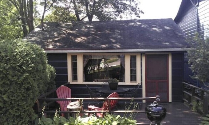 One bedroom, stand alone cabin at the family style mini-resort Cramer's Point Lake Breeze, just 2.5 mi to Village of Lake George. This seasonal stand alone cabin has its own deck with patio set, Solo camp fire stove and Adirondack chairs for relaxing and a charcoal BBQ. This traditional style cottage offers one bedroom with a queen bed, closet, living room, sleeper sofa, chair and TV, dining area, complete kitchen and one bath with a stand up shower stall (32"). This cabin includes access to all of our Cramer's Point Lake Breeze amenities on 2+ acres and access to Lake George.