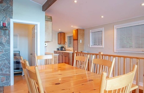 The main cottage features 3 bedrooms and 1 bathroom, a kitchen with fridge, stove, microwave, toaster, nespresso machine, kettle and everything else you'll need. Enjoy your meals at the dining table while enjoying views of the lake or sit outside at the patio table on the upper deck. The living room has a comfy sofa and loveseat where you can curl up with a good book, play cards, have fun with a board game or watch a movie.