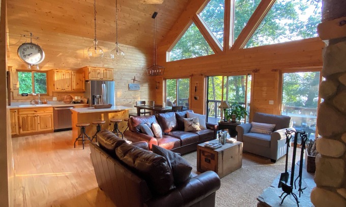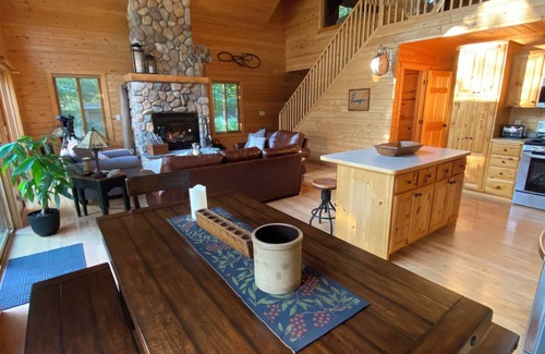 Enjoy the outdoor serenity of quiet sunrises and singing birds from our deck or indoors from the beautifully decorated and cozy living room! Spend your day exploring on land with a walk down our wildlife filled wooded road or on the water using our canoe, paddle boat or get your morning work out on our stand-up paddle boards! Sit by the fire by the lake listening to the loons or relax indoors taking advantage of our amazing lower level family room with game table, dry bar, fireplace, SMART TV and sound bar. Finish your day preparing a meal in our fully equipped kitchen or outdoors on the BBQ grill!
