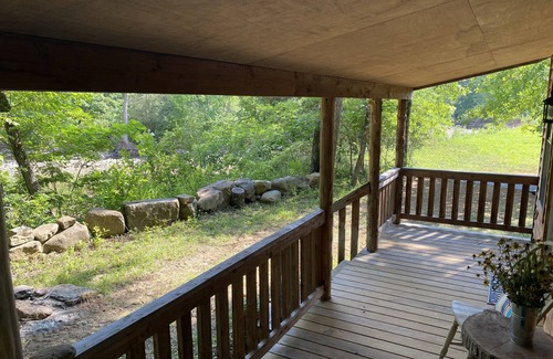 The cozy cabin sits on the bank of the Little Mulberry Creek. The creek runs most of the year, but slows to a trickle in the dry summer months (as shown in the photos).