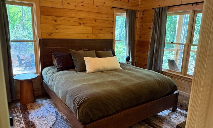 Tucked away in a peaceful forest setting in beautiful Ellijay, this cozy 2-bedroom retreat blends rustic charm with modern comforts—including air conditioning, WiFi, and all the essentials for a relaxing stay. Step outside and you’ll be greeted by the soothing sounds of the creek, flowing just steps from your door. Whether you're sipping coffee on the porch, exploring nearby trails, or unwinding by the fire pit under a starlit sky, this is the perfect escape for couples, small families, or anyone craving a little peace and quiet in the woods.