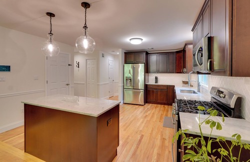 - This multi-level home requires a small step to enter and interior staircases for full access